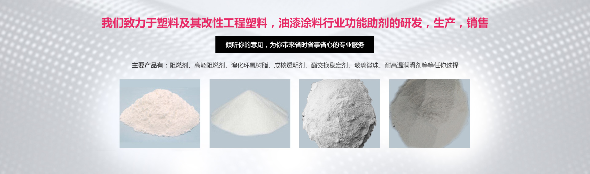 專注各種阻燃劑的研發(fā)與生產(chǎn):尼龍阻燃劑 , 無鹵阻燃劑 , 玻璃微珠 , 灼熱絲